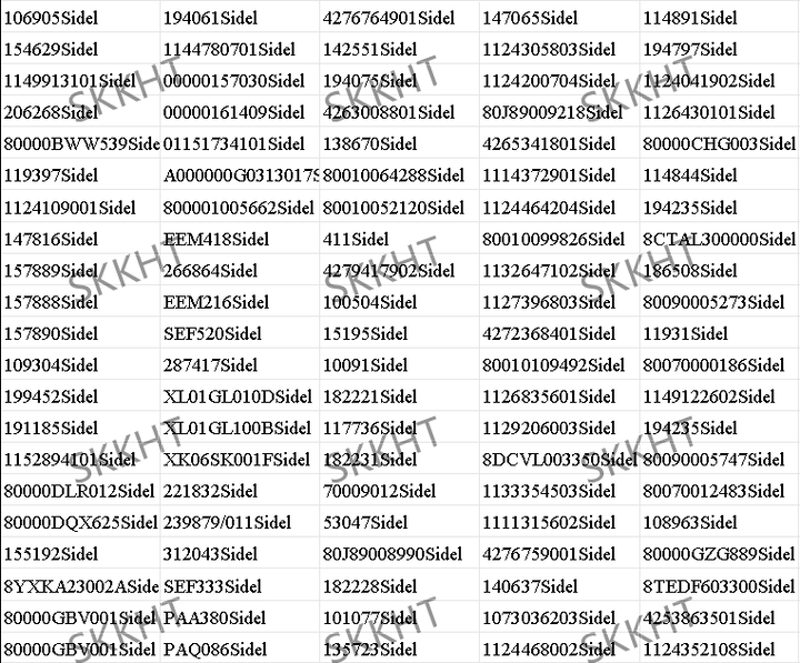 | 131232Sidel | 266Sidel | 10053Sidel | 04282603101-BSidel |